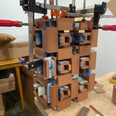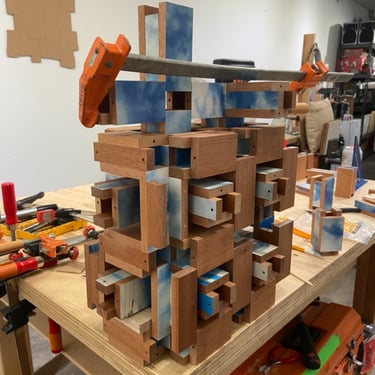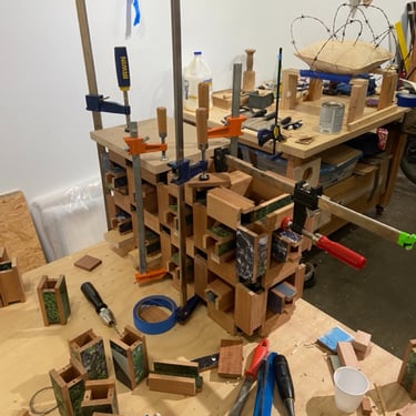all works are made by hand from solid wood with other materials.